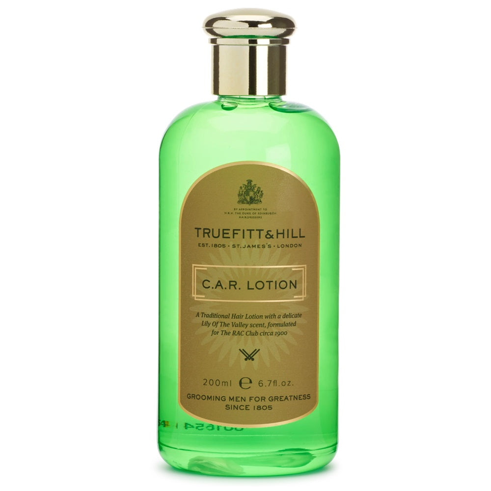 Truefitt & Hill C.A.R. Lotion is een verfijnde haarlotion die je haar en hoofdhuid zowel beschermt, voedt, verzorgt als hydrateert. De kalmerende werking op de hoofdhuid verkleint de kans op roos. Ook bevat de lotion farnesol, dat door de antibacteriële werking korte metten maakt met ongewenste bacteriën die jeuk kunnen veroorzaken.