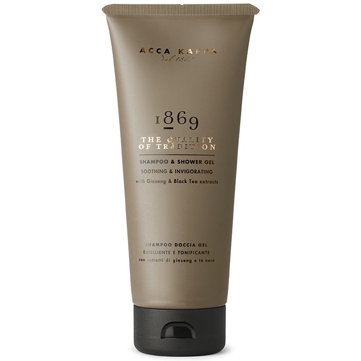 Acca Kappa 1869 Shampoo & Douchegel biedt een kalmerende en versterkende verzorging dankzij de krachtige extracten van ginseng en zwarte thee. De formule is ontworpen om zowel haar als huid effectief te reinigen zonder uitdroging. Ginseng stimuleert de bloedcirculatie en versterkt de haarwortels, terwijl zwarte thee antioxidanten biedt die de huid verzachten en beschermen tegen schadelijke invloeden. Deze combinatie zorgt voor een verfrissende, herstellende werking die de huid voedt en het haar laat stralen. De milde, plantaardige oppervlakteactieve stoffen reinigen grondig en respecteren de natuurlijke balans van huid en haar, waardoor het product ideaal is voor dagelijks gebruik.