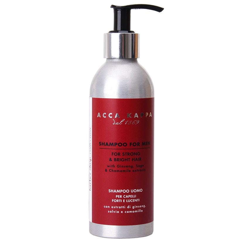 Acca Kappa Barbershop Collection Shampoo is speciaal ontwikkeld voor mannen en biedt een krachtige mix van natuurlijke ingrediënten voor sterk en glanzend haar. De formule bevat ginseng, salie en kamille-extracten die samen een revitaliserende en verfrissende werking hebben. De menthol zorgt voor een verfrissende sensatie, terwijl tarweproteïnen een beschermende laag vormen die het haar versterkt en haarbreuk voorkomt. Ginsengextract stimuleert de haargroei en helpt haaruitval te vertragen, waardoor je haar er gezond uitziet. Deze shampoo biedt niet alleen effectieve reiniging, maar ook verzorging en bescherming voor een optimale haardos.