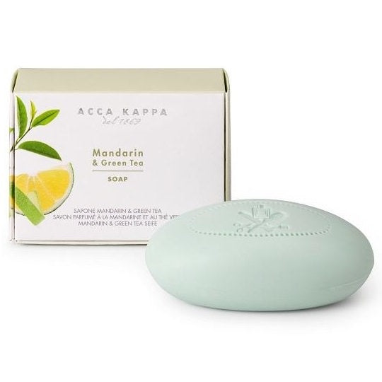 Acca Kappa Mandarin & Green Tea Zeep biedt een verkwikkende reiniging, geïnspireerd door de energie van citrusvruchten en de zachte zoetheid van groene thee. Deze plantaardige zeep, met zijn intense, frisse geur, roept de warme zonneschijn en geuren van de Middellandse Zee op, waardoor je het gevoel krijgt van een zomerse wandeling in een zacht briesje. De zeep wordt zorgvuldig gemaakt met pure plantaardige oliën, waarbij een speciale pasta wordt verkregen door schaafsel te smelten en met geur te vermengen. Het resultaat is een luxueuze, milde zeep die de huid zacht en gehydrateerd achterlaat.