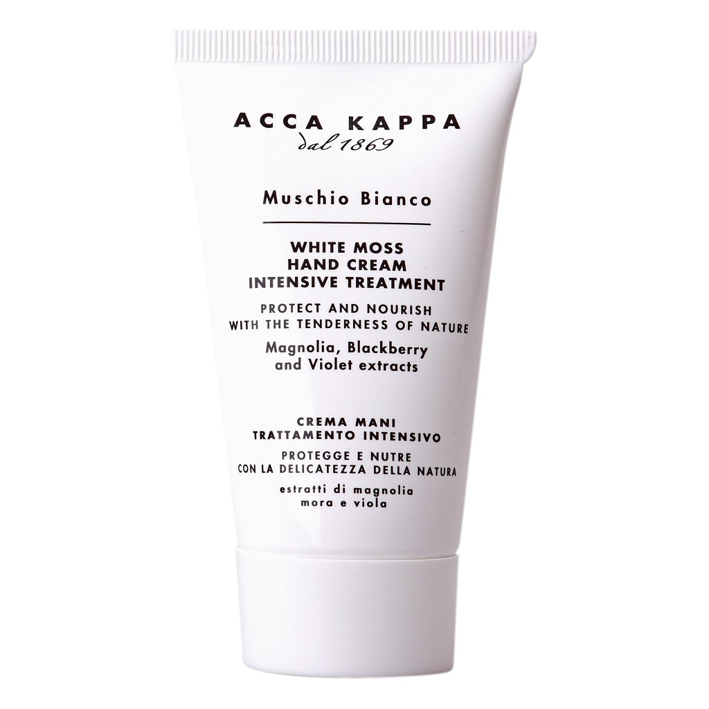 Acca Kappa White Moss Handcrème is een rijke handcrème speciaal ontwikkeld voor de droge en gevoelige huid. De zorgvuldig geselecteerde natuurlijke ingrediënten bieden een huidzuiverende, beschermende en verzachtende behandeling met langdurige hydratatie. Deze formule is ideaal om ontstekingen en kloven te voorkomen, waardoor je handen zacht en zijdezacht aanvoelen. De niet-vette crème trekt snel in en laat geen residu achter, zodat je direct na gebruik kunt genieten van gladde, gehydrateerde handen.