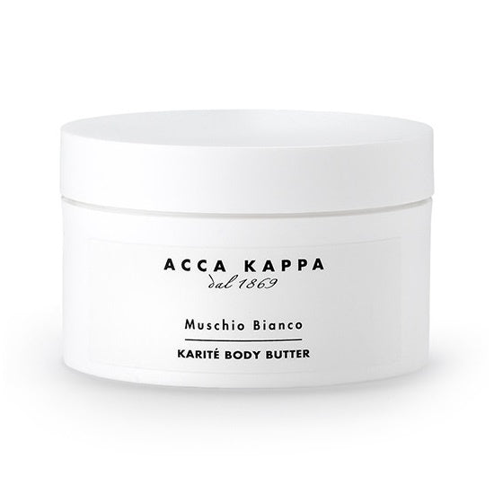 Acca Kappa White Moss Karité Body Butter is een luxe lichaamscrème op basis van shea boter en plantaardige dermoactieve bestanddelen. Shea boter, verkregen uit de koude persing van Afrikaanse karitézaden, bevat vitamine A, B, E en F en staat bekend om zijn antioxiderende en verouderingsbestrijdende eigenschappen. Het hoge gehalte aan onverzeepbare stoffen bevordert de vorming van nieuw collageen, wat de huid verstevigt en elastisch maakt. Verrijkt met een complex van botanische oliën, biedt deze body butter een rijke, voedende en hydraterende behandeling, die de huid regenereert en beschermt zonder vet aan te voelen.