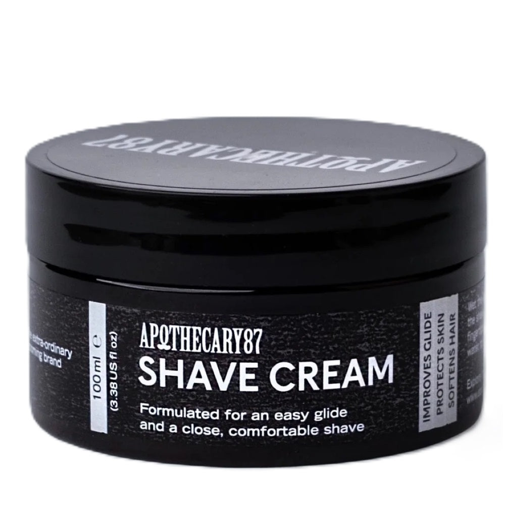Apothecary87 Scheercrème is ontwikkeld om je dagelijkse scheerroutine comfortabeler en effectiever te maken. De formule bevat myristinezuur en stearinezuur, die samen zorgen voor een rijk, romig schuim en een beschermende barrière tussen huid en mes, wat helpt om irritatie te voorkomen. Plantaardige glycerine zorgt voor extra gladheid, waardoor het scheermes soepel over de huid beweegt en je moeiteloos een glad resultaat behaalt. Kokosnootextractwerkt verzachtend en maakt de haren zachter voor een prettigere scheerbeurt. Vitamine E helpt de huid gehydrateerd te houden en beschermt tegen roodheid en scheerbultjes. Deze scheercrème biedt alles wat je nodig hebt voor een gladde huid en een verzorgde uitstraling, elke dag weer.