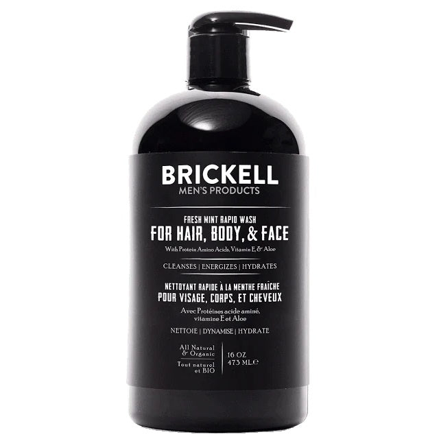 Brickell Men's Products All In One Rapid Wash Fresh Mint is de ultieme 3-in-1 oplossing die haar, lichaam en gezicht reinigt zonder uit te drogen. Deze energieke, natuurlijke en biologische body wash voor mannen verwijdert effectief olie, zweet en onzuiverheden, terwijl het haar, de hoofdhuid en de huid worden gevoed en gehydrateerd met vitamines en natuurlijke extracten. De formule, doordrenkt met gehydrolyseerd tarweproteïne, vitamine E en aloë vera, versterkt de haarstructuur, bestrijdt huidveroudering en behoudt een gezonde, volle uitstraling voor haar en huid.