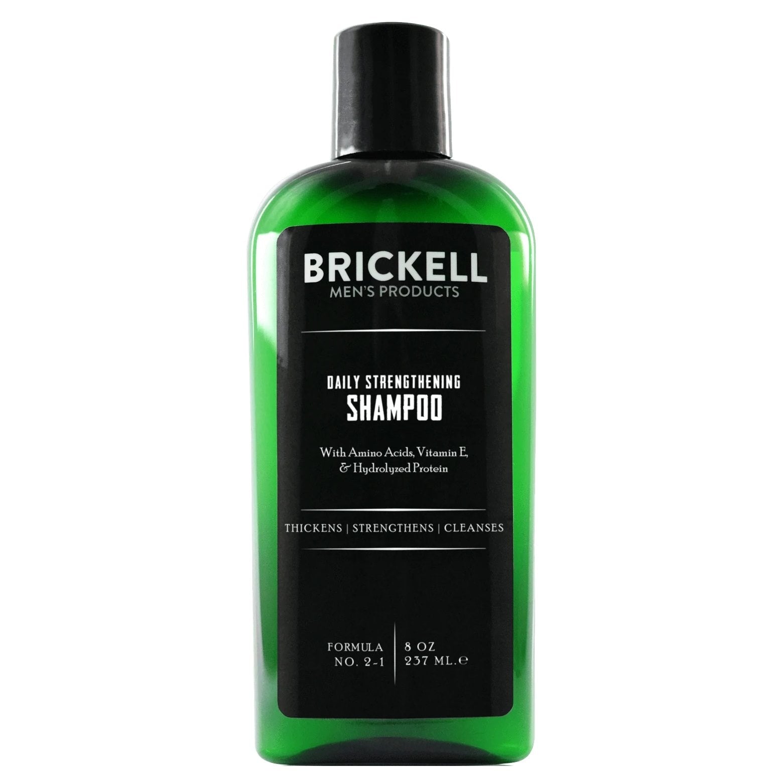 Brickell Men's Daily Strengthening Shampoo biedt mannen de ideale oplossing voor sterker, voller en gezonder haar. Deze shampoo bevat krachtige natuurlijke ingrediënten die de hoofdhuid stimuleren, roos voorkomen en het haar een vollere en glanzende uitstraling geven. Met gehydrolyseerd tarweproteïne en aminozuren herstelt en versterkt deze wetenschappelijk samengestelde formule het haar, ideaal voor mannen met dunner wordend haar.