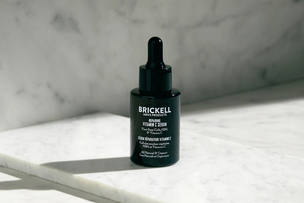Brickell Men's Products Repairing Vitamin C Serum maakt gebruik van geavanceerde ingrediënten om de huid effectief te revitaliseren. Plantaardige stamcellen, zelfvernieuwende plantencellen, verminderen schade veroorzaakt door huidcelontsteking, waardoor de huid gezonder en jeugdiger oogt. Vitamine C, een essentiële voedingsstof voor de huid, vermindert UV-schade, ondersteunt de collageenproductie en bevordert een gelijkmatige teint. MSM (Methylsulfonylmethaan), afkomstig uit voedingsbronnen zoals spinazie en boerenkool, vermindert ouderdomsvlekken en huidpigmentatie, waardoor de huid er stralender en egaler uitziet. Samen vormen deze krachtige ingrediënten een serum dat de tekenen van veroudering bestrijdt, de huidstructuur verbetert en zorgt voor een jeugdige uitstraling. Perfect voor dagelijks gebruik, Brickell's Vitamin C Serum biedt een effectieve oplossing voor mannen die streven naar een gezonde en stralende huid.
