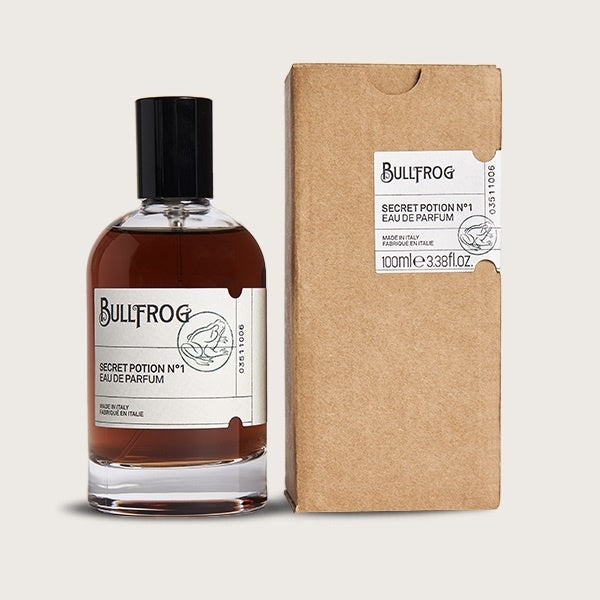 Bullfrog Eau de Parfum N.1 Secret Potion is een geur geïnspireerd op de geheimzinnigheid van een speakeasy in de jaren 1920. Een geheime en zeer uitgebreide geurcocktail, die de traditionele elementen van de sfeer van een speakeasy uit de jaren 1920 opsluit. De warmte van whisky, rum en absint worden vermengd met de herinnering aan oud leer en pijprook.