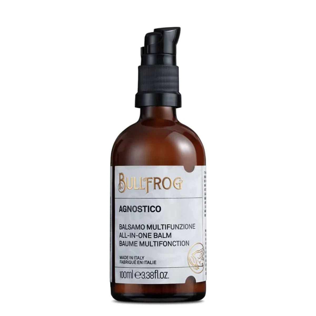 De Bullfrog Agnostico All-in-One Balm verzacht, voedt en beschermt de baard en huid met zijn kenmerkende, karaktervolle geur.