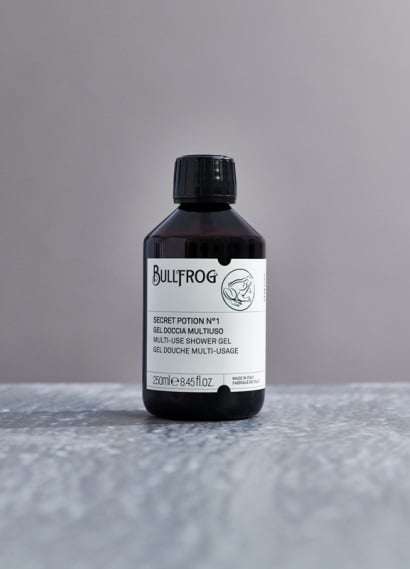 Bullfrog Multi-Use Shower Gel N.1 Secret Potion is een veelzijdig verzorgingsproduct dat gebruikt kan worden als zowel een shampoo als een douchegel, ideaal voor het grondig reinigen van haar, gezicht en lichaam. Dit alles-in-één product biedt een uitgebreide reiniging voor de moderne man die zowel efficiëntie als luxe waardeert. De gel schuimt rijkelijk en reinigt diep, terwijl het de huid en het haar verzorgt en hydrateert. Na gebruik blijft de huid subtiel geparfumeerd met de kenmerkende geur van No.1 Secret Potion – een warme, mannelijke geur die een langdurige indruk maakt. Deze geurcombinatie voegt een extra dimensie toe aan je dagelijkse verzorgingsroutine, waardoor je je de hele dag verfrist en verzorgd voelt.
