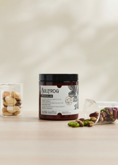 Bullfrog Nourishing Restorative Butter is een luxe conditioner voor haar en baard die geïnspireerd is op de klassieke formules. Bevat een zachte en omhullende textuur met een onmiskenbare pistachegeur die verzacht en voedt.