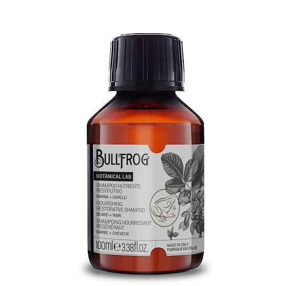 Bullfrog Nourishing Restorative Shampoo is een ideale romige en zachte shampoo om de baard en het haar te hydrateren en verzorgen. De hydraterende en revitaliserende eigenschappen van de botanische actieve ingrediënten, waaronder pistache olie, maken deze shampoo bijzonder geschikt voor droog haar en baarden. Deze shampoo herstelt de voeding, verzacht, geeft glans en maakt het haar en de baard gemakkelijker te kammen.