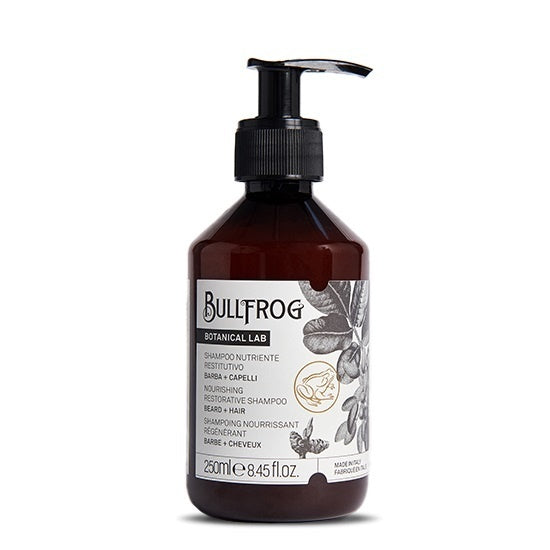 Bullfrog Nourishing Restorative Shampoo is een ideale romige en zachte shampoo om de baard en het haar te hydrateren en verzorgen. De hydraterende en revitaliserende eigenschappen van de botanische actieve ingrediënten, waaronder pistache olie, maken deze shampoo bijzonder geschikt voor droog haar en baarden. Deze shampoo herstelt de voeding, verzacht, geeft glans en maakt het haar en de baard gemakkelijker te kammen.