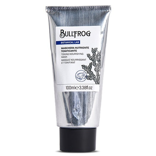 Bullfrog Toning Nourishing Mask versterkt en verkwikt de huid door diepgaand te voeden. Boordevol krachtige actieve 97,1% natuurlijke ingrediënten die helpen het hydratatieniveau van de huid te herstellen en droogte tegen te gaan. Het versterkende voedende masker verzacht, beschermt en hydrateert zelfs de droogste huid diep en zorgt voor een onmiddellijk fris en tonisch effect. De textuur is een olie-gel die een zelf-emulgerend vermogen bezit. Deze eigenschap vergemakkelijkt het verwijderen: bij toevoeging van water verandert het in een zachte melkachtige lotion.