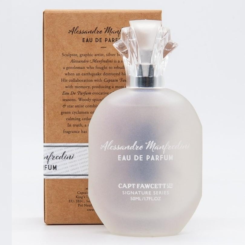 Captain Fawcett Eau de Parfum Alessandro Manfredini is een unieke en intrigerende herengeur, gecreëerd in samenwerking met de befaamde Italiaanse kunstenaar Alessandro Manfredini. Deze verfijnde geur belichaamt de essentie van klassieke stijl en moderne elegantie. De combinatie van houtachtige en kruidige noten creëert een onweerstaanbare en blijvende indruk. Deze parfum is perfect voor mannen die op zoek zijn naar een geur die hun persoonlijkheid en stijl perfect aanvult. Met Captain Fawcett Eau de Parfum Alessandro Manfredini verhef je jouw dagelijkse verzorgingsroutine tot een authentieke belevenis.