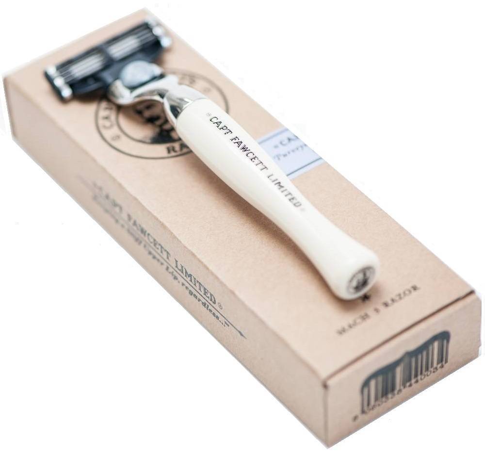 Captain Fawcett Mach3 Razor is de ultieme keuze voor een gladde en stijlvolle scheerervaring met een imitatie ivoren handvat en een chromen kraag en basis. Lees meer
