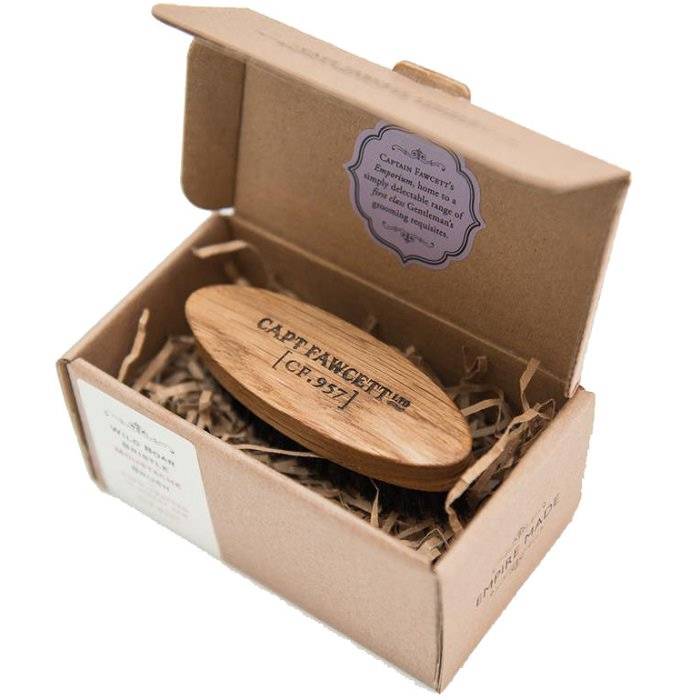 Captain Fawcett Moustache Brush is met uiterste zorg vervaardigd uit hoogwaardige materialen. De borstelharen zijn gemaakt van wildzwijnhaar, wat zorgt voor een optimale verzorging en styling van je snor. Het handvat van de borstel is met de hand gemaakt van massief hout, wat niet alleen een luxueuze uitstraling geeft, maar ook duurzaamheid garandeert. Met een lengte van 83 mm en een breedte van 29 mm, ligt deze borstel perfect in de hand en is hij gemakkelijk te manoeuvreren voor een nauwkeurige styling van je snor. Voeg dit hoogwaardige, handgemaakte instrument toe aan je verzorgingsroutine en ervaar de voordelen van een perfect gestylde snor.