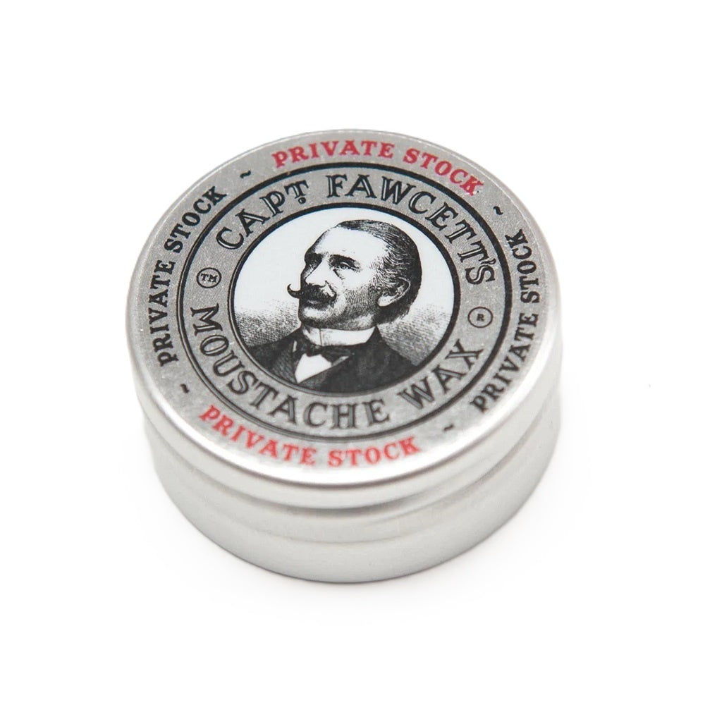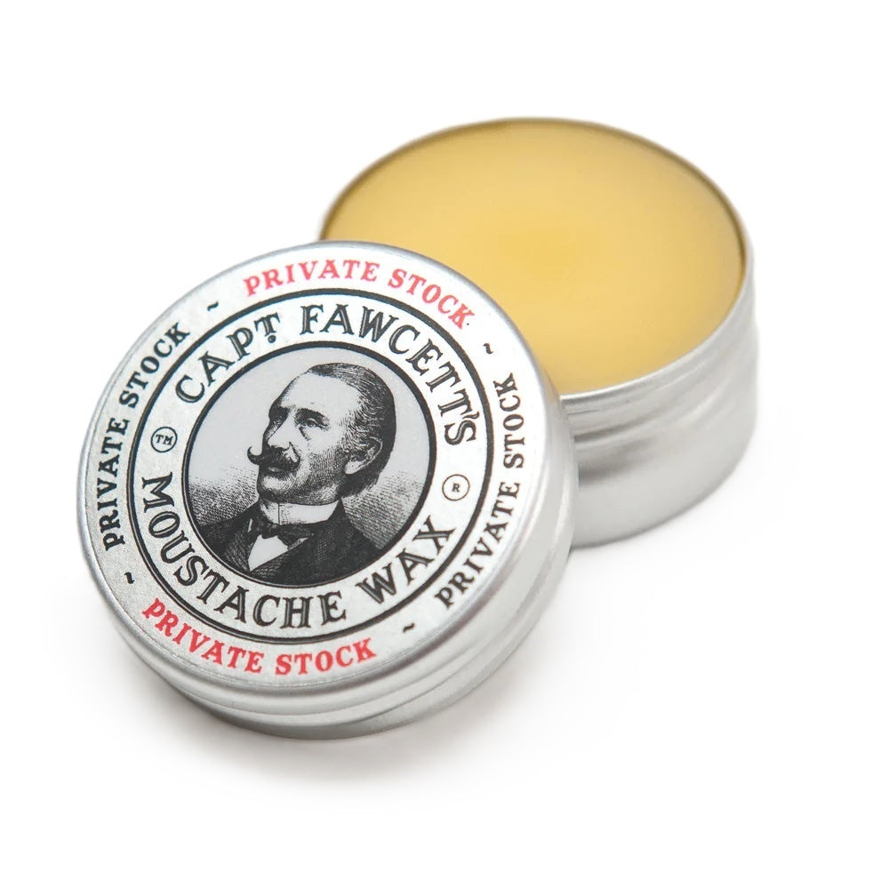 Captain Fawcett Private Stock Snorrenwax biedt niet alleen een stevige hold voor je snor, maar verwent je zintuigen met de warme en kruidige geur van cederhout, zwarte peper, patchoeli en palmarosa, waardoor je snorverzorging een luxe en aromatische ervaring wordt.