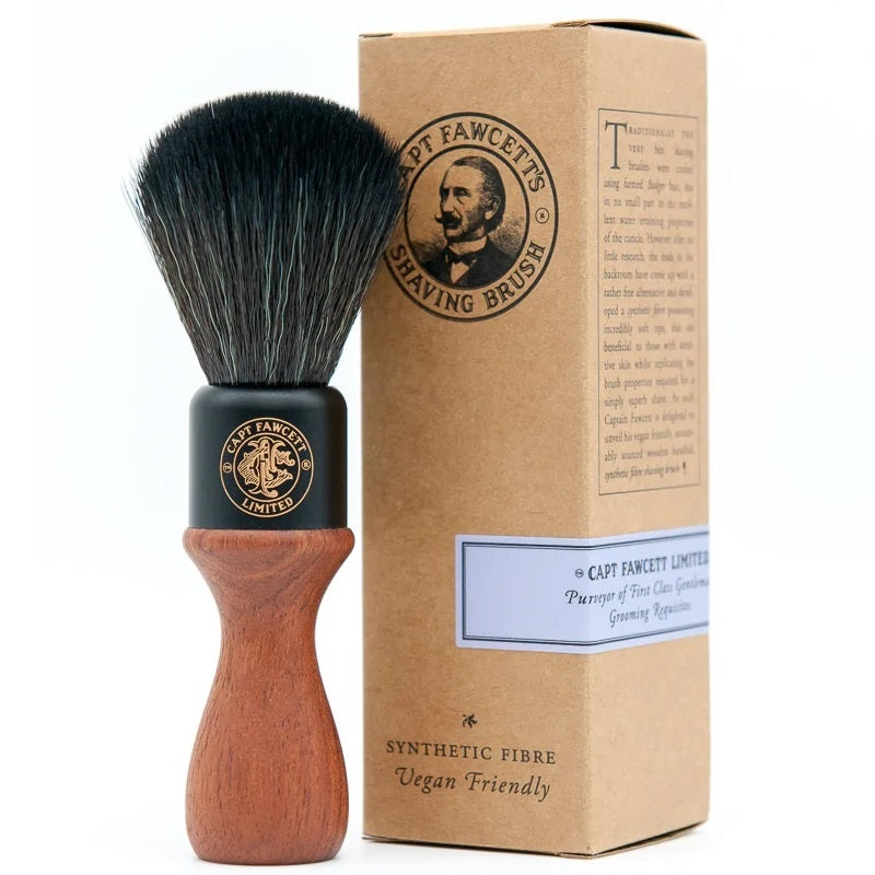 Captain Fawcett's Synthetic Fibre Scheerkwast heeft een handvat van hoogwaardig hout, dat niet alleen duurzaamheid en stevigheid biedt, maar ook een vleugje klassieke stijl toevoegt aan je scheerroutine. De synthetische haren zijn zorgvuldig geselecteerd om superieure prestaties te leveren zonder dierlijke producten te gebruiken, waardoor deze scheerkwast milieuvriendelijk en diervrij is. De zachte en duurzame synthetische haren bieden een luxueuze en comfortabele scheerervaring. Met Captain Fawcett's Synthetic Fibre Scheerkwast kies je voor hoogwaardige materialen en een verfijnde scheerervaring.