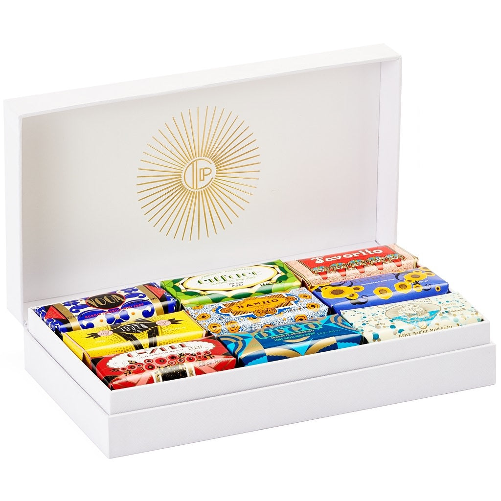 Claus Porto Giftset Mini Soaps bevat een selectie van miniatuur zeepbars in diverse geuren. Deze zepen, gemaakt met 100% plantaardige ingrediënten en verrijkt met shea olie, reinigen de huid op milde wijze en zorgen voor hydratatie. Het romige schuim laat de huid zacht aanvoelen en een subtiele geur achter. De geuren variëren van fris en bloemig tot warm en kruidig, waardoor er voor iedereen iets passends is. Verpakt in een stijlvolle doos is deze set een mooie keuze als cadeau of om jezelf te verwennen.