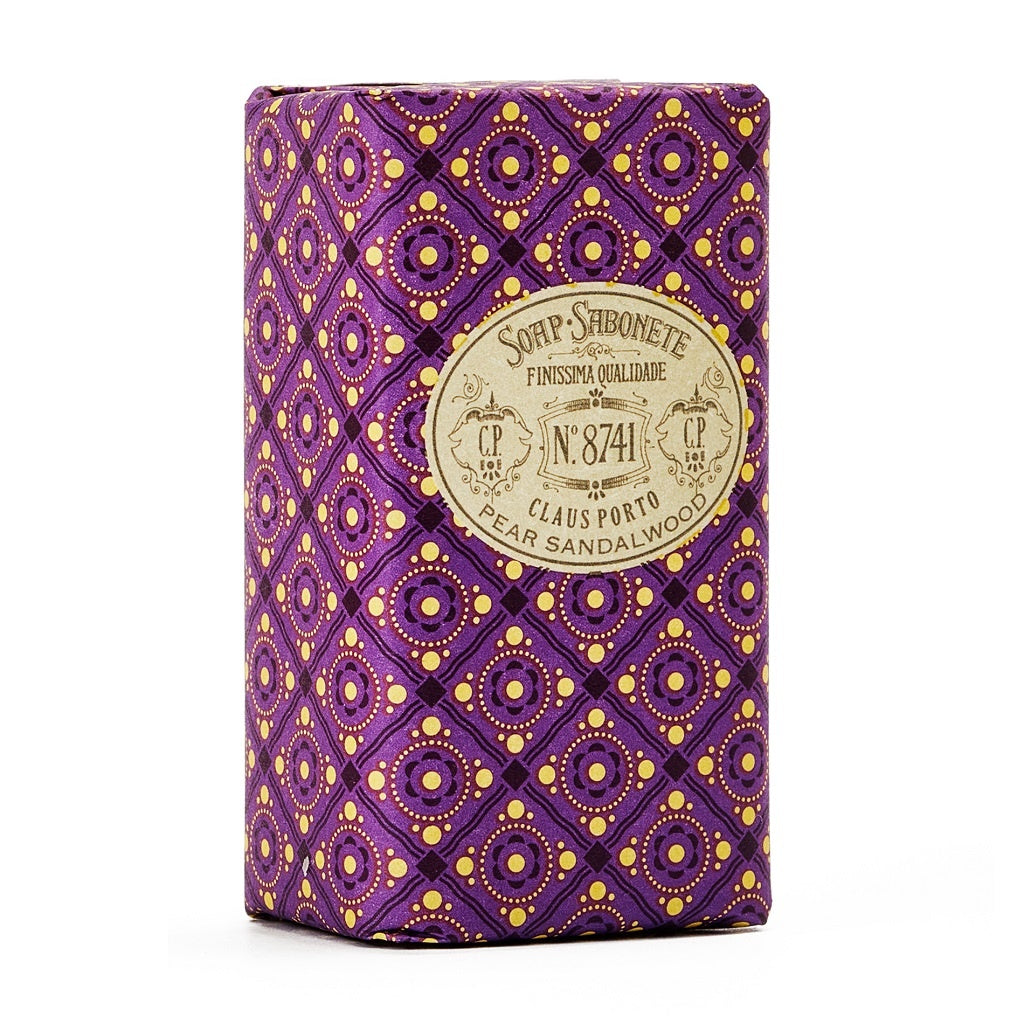 Claus Porto Soap Bar Mini 8741 Pear Sandalwood combineert de zoete, fruitige geur van peer met de warme, houtachtige tonen van sandelhout voor een frisse en kruidige geur. Deze handgemaakte zeep uit Portugal is verrijkt met hydraterende 100% plantaardige oliën, waardoor de huid op milde wijze wordt gereinigd en verzorgd. De rijke, romige textuur laat de huid zacht en gevoed aanvoelen, terwijl de elegant ontworpen verpakking een vleugje vintage charme toevoegt. Perfect voor dagelijks gebruik of als stijlvol cadeau.