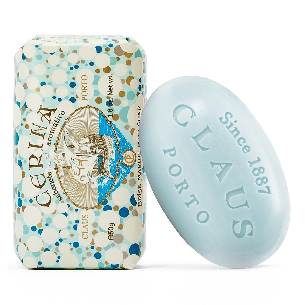 Claus Porto Soap Bar Mini Cerina Brise Marine brengt de frisse, geur essentie van de oceaan naar je dagelijkse verzorgingsroutine. Met een geur die de zilte zeebries combineert met delicate bloemen en houtachtige ondertonen, biedt deze zeep een unieke geurbeleving. Verrijkt met shea olie en plantaardige ingrediënten hydrateert en verzorgt het de huid, terwijl het zachte, romige schuim een luxe gevoel achterlaat. Ambachtelijk gemaakt in Portugal en verpakt in een schitterend art-decopapier, is deze zeep niet alleen een genot om te gebruiken, maar ook een stijlvolle toevoeging aan je badkamer.