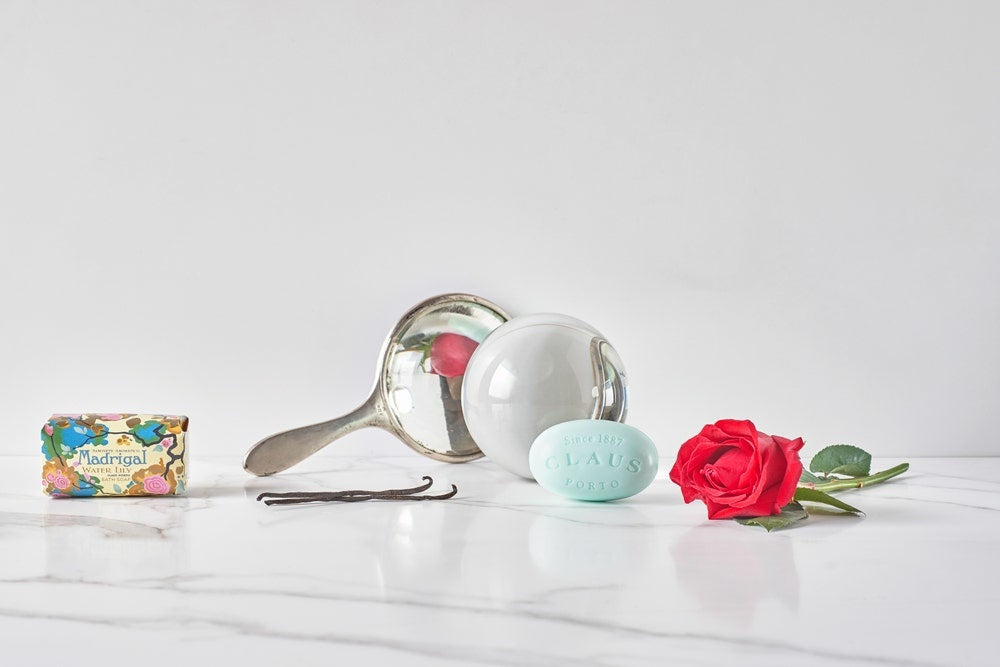 Claus Porto Soap Bar Mini Madrigal Water Lily heeft een zachte bloemige geur die rust en elegantie biedt. In de topnoten zorgen roos en heliotroop, met accenten van dragon en mandarijn, voor een frisse en uitnodigende start. Het hart bestaat uit een gebalanceerde mix van sering, kaneel, lelietje-van-dalen, jasmijn en kamperfoelie, die samen een kruidig, bloemig aroma vormen. De geur eindigt met de warme tonen van vanille, aangevuld door de lichte frisheid van hyacint en lotusbloesem. Een evenwichtige geur die verfijnd en natuurlijk aanvoelt.