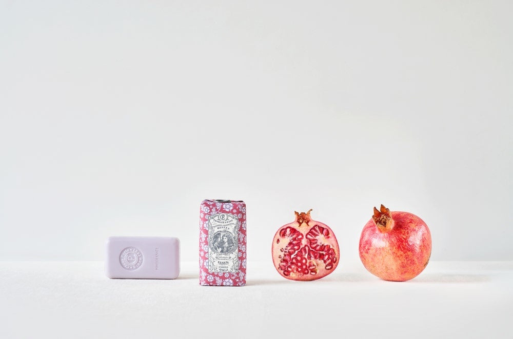 Claus Porto Soap Bar Mirror Pomegranate opent met verfrissende topnoten van rood fruit, sinaasappel en een groen akkoord, die samen een frisse en energieke geur creëren. In het hart komen de zoete en fruitige tonen van granaatappel, pruim en jasmijn naar voren, waardoor de geur een verfijnde, bloemige diepte krijgt. De basisnoten van muskus, viooltjes en een houtachtig akkoord geven de geur een warme, sensuele basis die perfect in balans is met de frisse en fruitige opening.