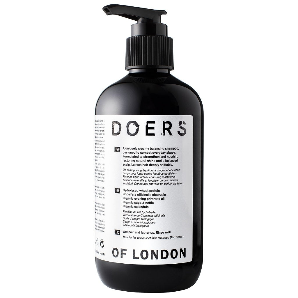 Doers of London Shampoo is een unieke en crèmige shampoo die speciaal is ontworpen het haar te versterken, te voeden en de natuurlijke glans te herstellen, terwijl ook de hoofdhuid in balans wordt gehouden. Deze shampoo schuimt gemakkelijk op en is geschikt voor alle haartypes. De formule is zacht genoeg om het haar niet uit te drogen, en dankzij de unieke mix van krachtige natuurlijke extracten blijft de hoofdhuid in evenwicht. Verder is de formule vegan, dierproefvrij, vrij van siliconen, parabenen en kunstmatige geur en kleurstoffen. Of je nu droog, beschadigd, normaal of vet haar hebt, de Doers of London Shampoo biedt de juiste verzorging en zorgt voor een gebalanceerde en gezonde hoofdhuid.