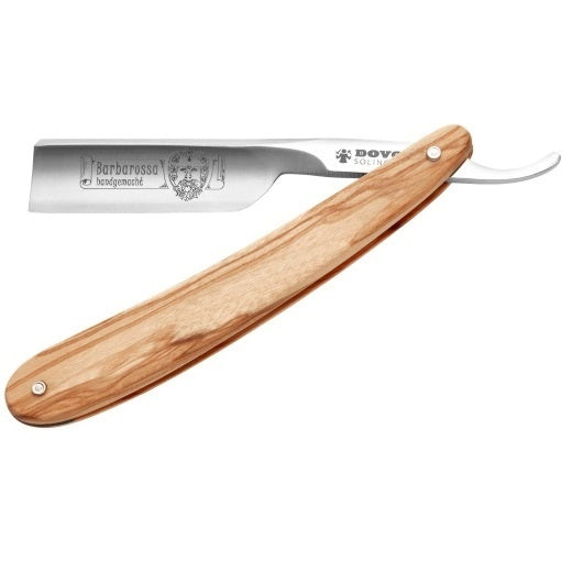 Dovo Straight Razor Barbarossa Olijfhout 5/8 is een elegant en hoogwaardig open scheermes, perfect voor nauwkeurig scheren en het bijwerken van contouren. Met een vlijmscherpe koolstofstalen mes van 5/8 inch levert het een uiterst gladde scheerbeurt, terwijl het prachtige olijfhouten handvat zorgt voor een comfortabele en stevige grip. Dit mes, gemaakt door het gerenommeerde Duitse merk Dovo, combineert traditioneel vakmanschap met moderne luxe, en is de ideale keuze voor mannen die waarde hechten aan precisie en stijl in hun scheerroutine.