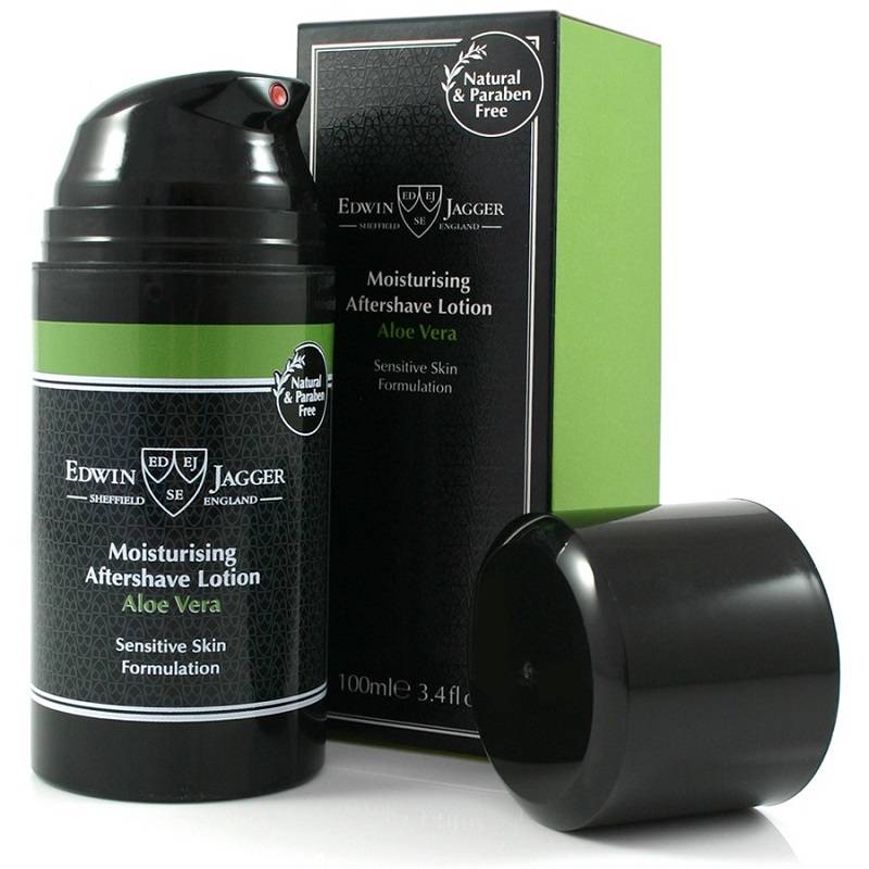 Edwin Jagger Aftershave Lotion Aloe Vera is speciaal geformuleerd met natuurlijke ingrediënten die de huid optimaal verzorgen na het scheren. Aloë vera staat centraal in de formule, bekend om zijn verzachtende, hydraterende en herstellende eigenschappen. Het kalmeert de huid direct, vermindert roodheid en helpt irritaties te verlichten. Dankzij de lichte, niet-vette textuur trekt de lotion snel in en voorkomt het een trekkerig gevoel, terwijl de huid soepel en verzorgd blijft. De subtiele, frisse geur biedt een aangenaam aroma, en de formule is geschikt voor alle huidtypes, met name de gevoelige huid. Perfect voor een comfortabele en verfrissende finish na elke scheerbeurt.