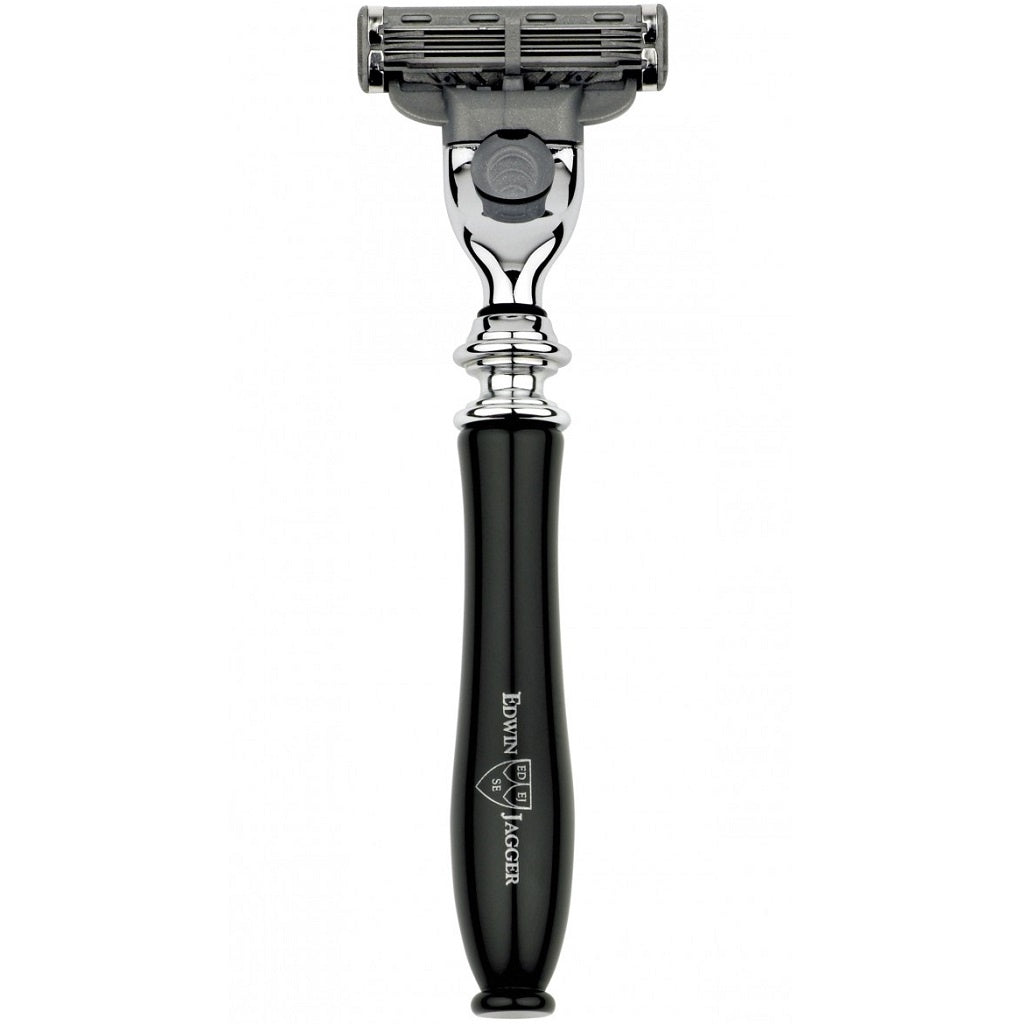 Edwin Jagger Mach3 Scheermes Chatsworth Zwart is een perfect voorbeeld van luxe en vakmanschap. Dit scheermes heeft een elegant ontwerp met een handvat gemaakt van zwart kleurig edelkunsthars, dat prachtig contrasteert met het hard verchroomde metalen accent. Het gebruik van hoogwaardige materialen zorgt voor een stevige grip en een uitstekende controle, wat resulteert in een comfortabel, veilig en glad scheerresultaat. Geschikt voor de Gillette® Mach3™ scheermesjes, biedt dit scheermes niet alleen functionaliteit, maar ook een verfijnde uitstraling voor de moderne man.
