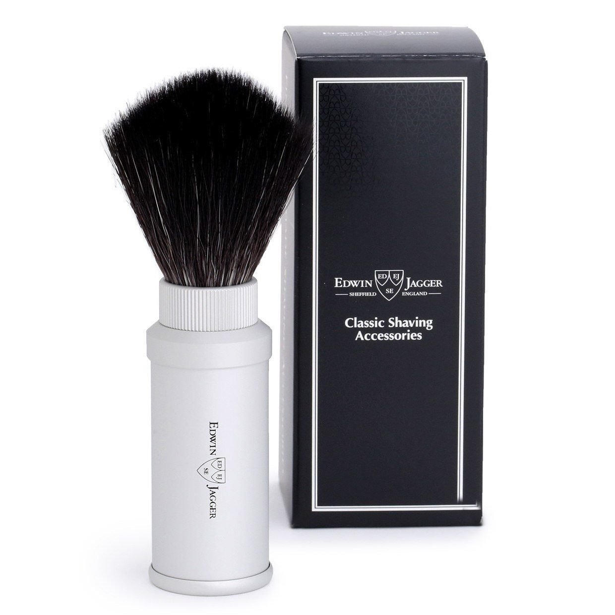 Edwin Jagger Reis Scheerkwast Black Fibre Zilver is een ideale scheerkwast voor de reizende gentleman die niet wil inleveren op scheercomfort. Deze scheerkwast combineert een compact, lichtgewicht ontwerp met hoogwaardige synthetische Black Fibre haren die soepel schuim creëren met scheerzeep of -crème. Het stijlvolle handvat van duurzaam zilver kunststof is ontworpen voor een stevige grip en moeiteloos gebruik. De borstelharen zijn diervriendelijk, snel drogend en eenvoudig te reinigen, wat deze scheerkwast perfect maakt voor onderweg. Met zijn praktische afschroefbare houder blijft de kwast goed beschermd in de bagage, zodat je ook tijdens je reizen kunt genieten van een verfijnde scheerervaring.