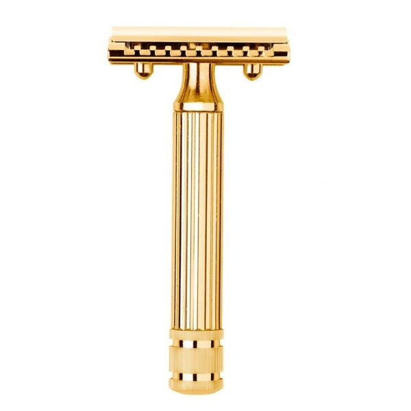 Fatip Safety Razor Classic Gold – Gesloten Kam is een uniek en sterk scheermes met een warme, goudkleurige afwerking, volledig gemaakt uit messing. Dankzij de gesloten kam biedt dit klassieke Italiaanse scheermes een milde en comfortabele scheerbeurt, ideaal voor dagelijks gebruik of voor mannen met een gevoelige huid. Het uitgebalanceerde gewicht en de fijne grip zorgen voor optimale controle en precisie, terwijl de afwerking het mes beschermt tegen slijtage en corrosie. Een elegant en verantwoord alternatief voor wegwerpmesjes, ontworpen voor jarenlang scheerplezier.