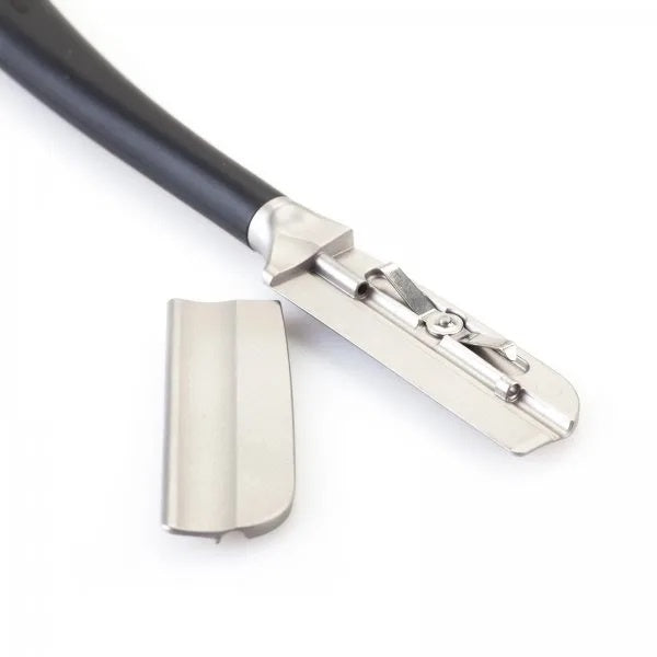 Feather Artist Club SS Japanese Razor Zwart is gemaakt van hoogwaardig roestvrij staal dat bestand is tegen hitte, chemicaliën en vuil, wat het mes uiterst duurzaam en hygiënisch maakt. Dankzij de afgeronde punt en slimme belichting van het mes glijdt het soepel over de huid, wat zorgt voor een zachte en comfortabele scheerbeurt. Het handvat, gemaakt van hittebestendig siliconenhars, biedt uitstekende grip en controle, zelfs bij nat gebruik. Dit scheermes is ideaal voor liefhebbers van een open mes zonder het intensieve onderhoud, en is compatibel met alle Feather Professional Blades voor aanpasbare scheereigenschappen.