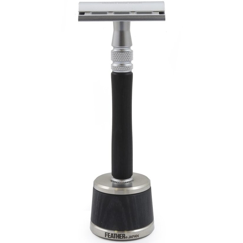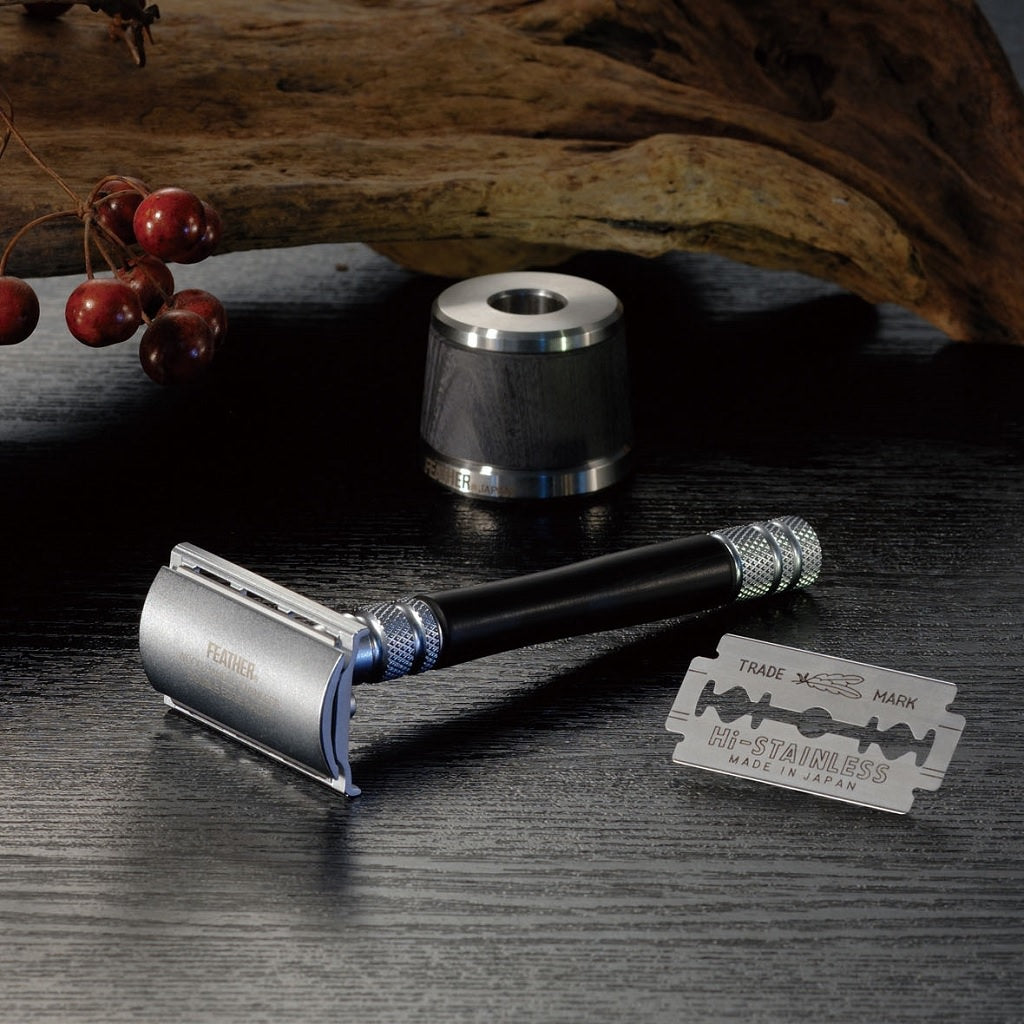 Feather Double Edge Safety Razor Zwart Hout is gemaakt uit de hoogste kwaliteitsmaterialen die zowel duurzaamheid als klasse combineren. De metalen onderdelen van het scheermes zijn gemaakt van premium roestvrij staal, dat bekend staat om zijn uitstekende weerstand tegen roest en vuil, waardoor het scheermes langdurig meegaat en eenvoudig te onderhouden is. Het handvat en de bijpassende standaard zijn gemaakt uit met hars geïmpregneerd houtlaminaat, een proces waarbij natuurlijk hout langzaam in hars wordt geweekt. Dit behoudt niet alleen de prachtige textuur van het hout, maar biedt ook uitstekende waterbestendigheid, waardoor vervorming of kromtrekken wordt voorkomen. De combinatie van deze materialen zorgt voor een stevige grip, optimale controle tijdens het scheren en een elegante uitstraling.