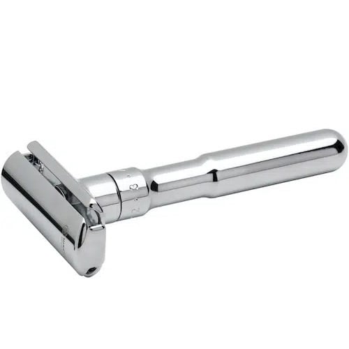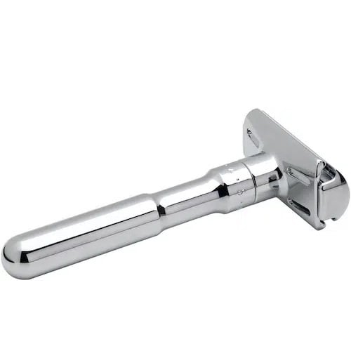 Merkur Futur 701 Double Edge Safety Razor is een Duits vakwerk sinds 1986, met een glanzende verchroomde afwerking. Het innovatieve ontwerp laat je moeiteloos de scheerhoek en mesafstand eenvoudig aanpassen door aan het handvat te draaien, zodat je de grondigheid van je scheerbeurt kunt afstemmen op je voorkeur. Of je nu een intensieve scheerbeurt of een zachtere dagelijkse scheerbeurt wilt, de Merkur Futur 701 biedt de perfecte, op maat gemaakte ervaring.