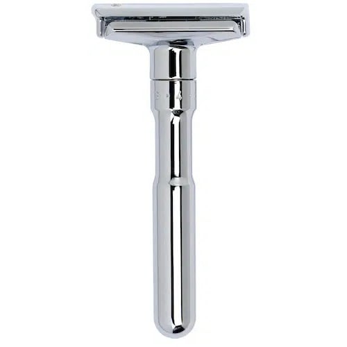 Merkur Futur 701 Double Edge Safety Razor is gemaakt van hoogwaardig gegoten zink, wat zorgt voor een robuuste en duurzame constructie. De gegalvaniseerde oppervlakken bieden extra bescherming tegen slijtage en zorgt voor de lange levensduur van het scheermes. De glanzend verchroomde afwerking zorgt niet alleen voor een luxe uitstraling, maar beschermt het mes ook tegen corrosie, waardoor het zijn schoonheid en functionaliteit behoudt, zelfs na veelvuldig gebruik. Deze combinatie van materialen maakt de Merkur Futur 701 een betrouwbaar en stijlvol scheermes dat zowel visueel aantrekkelijk als praktisch is.