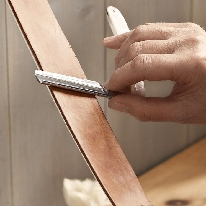 Herold Solingen Dubbelzijdige Scheerriem Deluxe belichaamt traditioneel vakmanschap en is een essentieel gereedschap voor het scheren met een open scheermes. Deze scheerriem, vervaardigd in Duitsland, is gemaakt van hoogwaardig leer dat zorgvuldig is gelooid en gepolijst voor optimale prestaties. Deze scheerriem is handgemaakt om het mes moeiteloos te polijsten en te conditioneren. Perfect voor het onderhouden van de scherpte en gladheid van je scheermes, biedt de Herold Solingen Dubbelzijdige Scheerriem Deluxe een luxe en effectieve oplossing dankzij zijn hoge kwaliteit en gemakkelijke handvat.