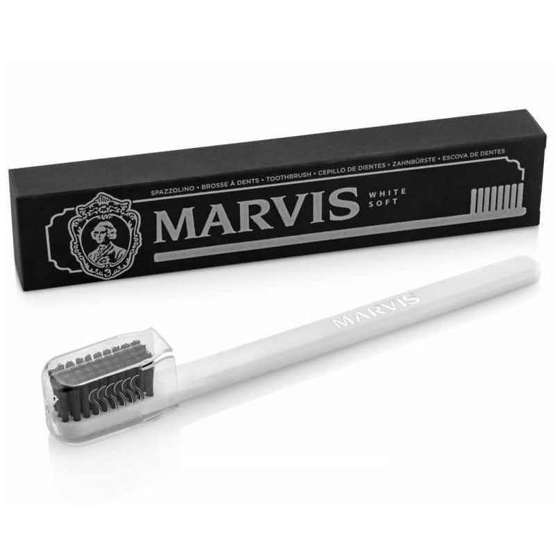 Marvis Tandenborstel Wit biedt een mix tussen stijl en doeltreffendheid met zijn hoogwaardige materiaal en simpele ontwerp. De witte kleur, geaccentueerd met het kenmerkende Marvis logo, straalt klasse uit. De tandenborstel is uitgerust met medium harde haren die een grondige reiniging garanderen, terwijl het simpele ontwerp zorgt voor comfortabel gebruik. Met Marvis Tandenborstel Wit geniet je niet alleen van een verfijnde mondverzorging, maar voeg je ook een vleugje luxe toe aan je badkamer.
