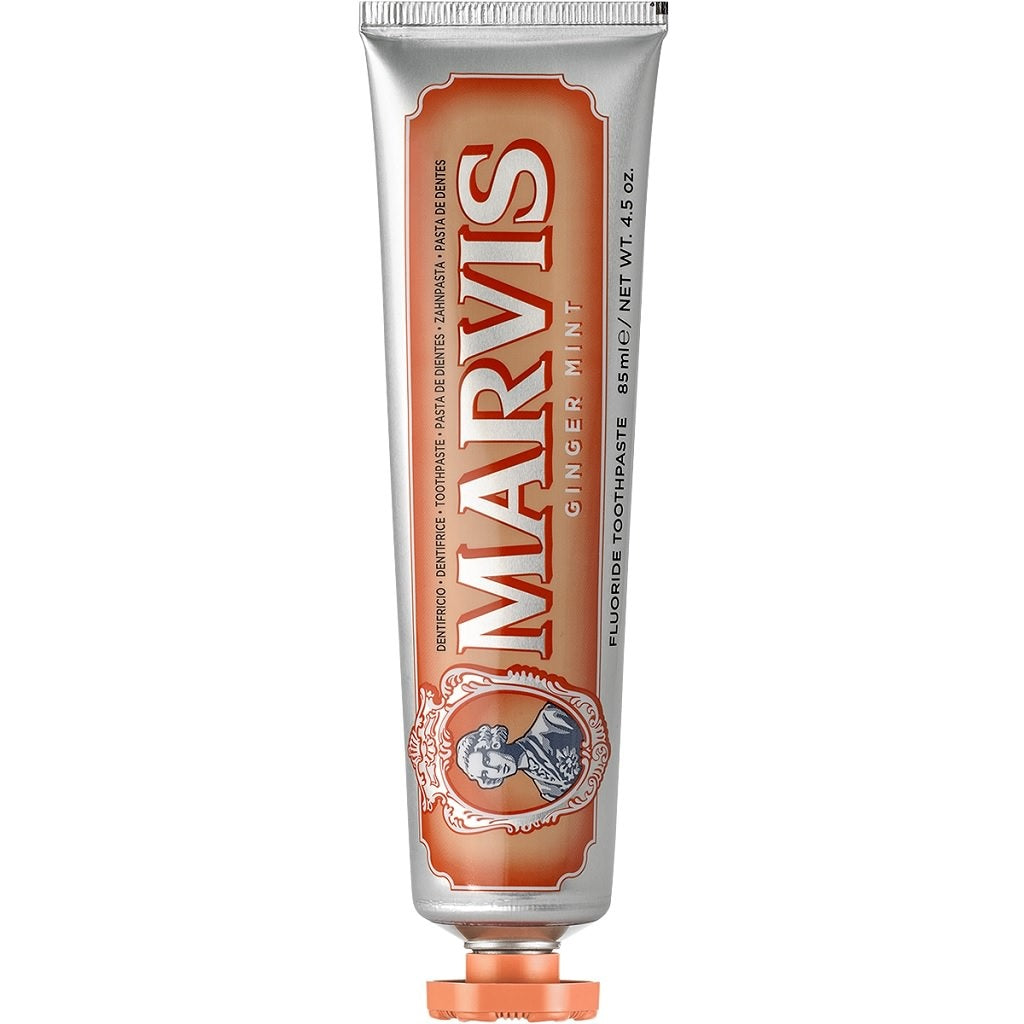 Marvis Tandpasta Ginger Mint biedt een unieke smaakbeleving met een verkwikkende mix van gember en muntsmaak. De frisheid van munt gecombineerd met de subtiele pittigheid van gember zorgt voor een verfrissende en stimulerende reiniging. Deze tandpasta reinigt grondig, geeft een langdurig fris gevoel en draagt bij aan een effectieve mondverzorging. Ervaar de prikkelende sensatie en de subtiele kruidigheid van gember met Marvis Tandpasta Ginger Mint voor een verfrissende start van de dag.