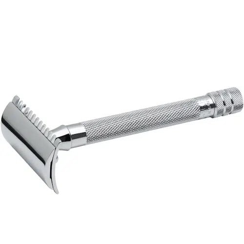 Merkur 25C Double Edge Safety Razor is de ultieme keuze voor heren die streven naar een nauwkeurige en comfortabele scheerbeurt. Met zijn slanke, lichtgewicht ontwerp en messing handvat ligt deze safety razor comfortabel in de hand en biedt optimale controle. De open kam scheerkop zorgt voor een zachte en efficiënte scheerervaring, terwijl het verwisselbare dubbelzijdige scheermesje voor een glad resultaat zorgt. Deze safety razor, vervaardigd door het gerenommeerde Duitse merk Merkur, belichaamt de perfecte combinatie van vakmanschap, precisie en tijdloze klasse voor mannen die kwaliteit hoog in het vaandel dragen. Transformeer je dagelijkse scheerroutine met de Merkur 25C en geniet van een onberispelijke look en een soepele huid.