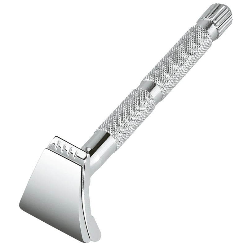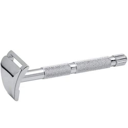 Merkur 907 Safety Razor Snor & Baard is een speciaal ontworpen scheermes voor het nauwkeurig vormgeven van contouren. Het smalle scheermes heeft een extreem korte snijkant, waardoor het ideaal is voor het precieze traceren van lijnen rondom de baard, snor of zelfs wenkbrauwen. Het smalle handvat biedt uitstekende controle, zodat je moeiteloos de gewenste contouren kunt creëren. Dit mes is perfect voor gedetailleerd werk en het stylen van kleinere gebieden. Dankzij zijn precisie en grip is de Merkur 907 de perfecte tool voor het verfijnen van je baard- en snorstijl.