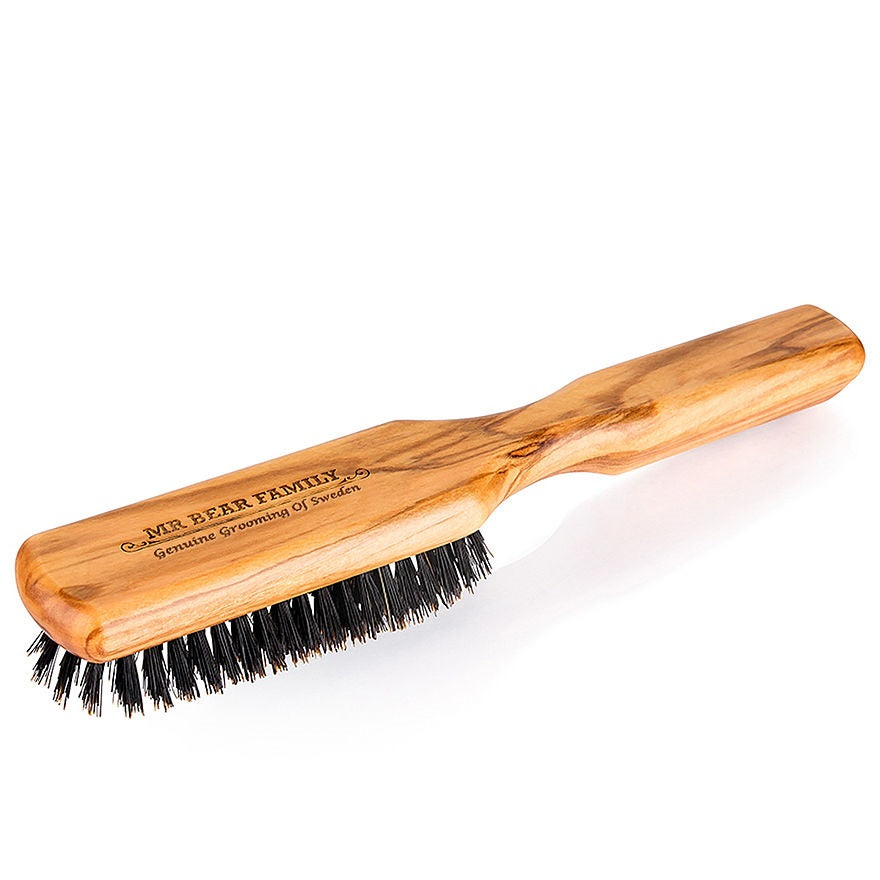 Mr Bear Family Baardborstel is een hoogwaardige borstel die essentieel is voor de verzorging van de baard. Het handvat is vervaardigd van 100% gewaxt olijfhout, wat zorgt voor een natuurlijke en duurzame uitstraling. De borstelharen zijn gemaakt van everzwijnenhaar, een materiaal dat bekend staat om zijn effectieve en zachte werking. Met deze borstel kun je de natuurlijke oliën en verzorgingsproducten gelijkmatig verdelen door de baard, waardoor de baard gezond en gevoed blijft. Regelmatig borstelen met deze baardborstel helpt de huid te vitaliseren en voorkomt een droge baard. Het is een onmisbaar accessoire voor elke baardliefhebber die streeft naar een verzorgde en gezonde baard.