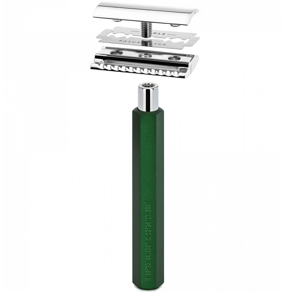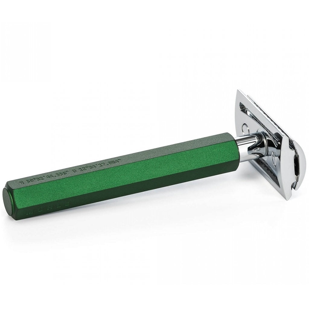 Muhle Double Edge Safety Razor Hexagon Forest is een luxe safety razor die precisie en comfort biedt tijdens elke scheerbeurt. Het handvat is gemaakt uit duurzaam en stijlvol geanodiseerd aluminium, met een prachtig groene afwerking die zowel modern als natuurlijk aanvoelt. De scheerkop heeft een gesloten kam, wat zorgt voor extra veiligheid en controle, ideaal voor een gladde en verzorgde huid. Dankzij de sterke constructie van het handvat en de verchroomde metalen scheerkop is deze safety razor niet alleen functioneel, maar ook een stijlvol accessoire in je scheerroutine. Perfect voor mannen die op zoek zijn naar een veilige, luxe scheerbeurt met een strak, modern design.