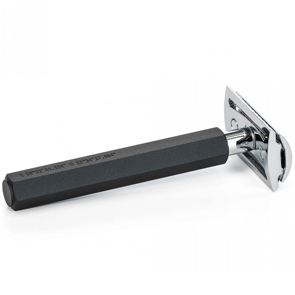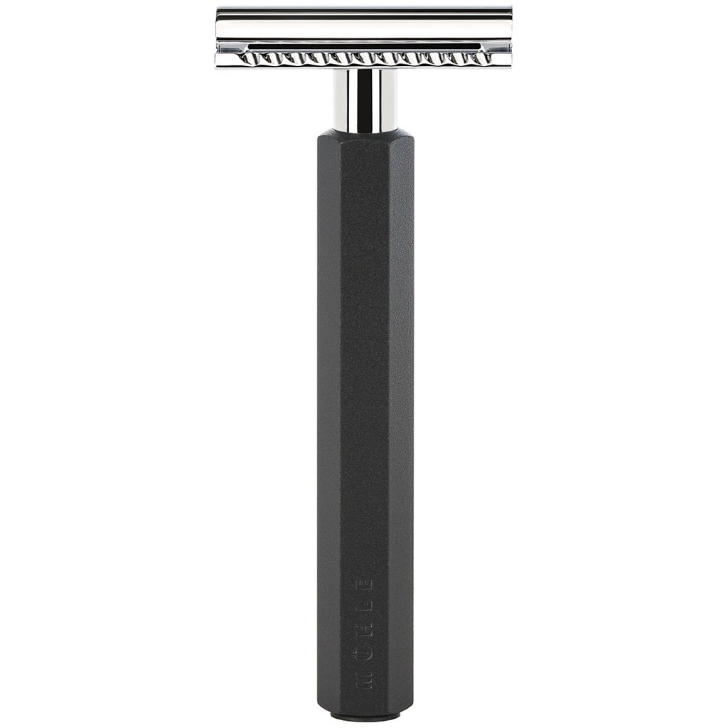 Muhle Double Edge Safety Razor Hexagon Graphite heeft een gesloten kam voor extra veiligheid en een gladder scheerresultaat. De geanodiseerde aluminium scheerkop en verchroomd metaal bieden zowel een lange levensduur als een moderne uitstraling, terwijl het geanodiseerde aluminiumhandvat zorgt voor een stevige grip en luxe uitstraling. Deze combinatie maakt de safety razor niet alleen functioneel, maar ook stijlvol en sterk, ideaal voor een nauwkeurige en comfortabele scheerbeurt.