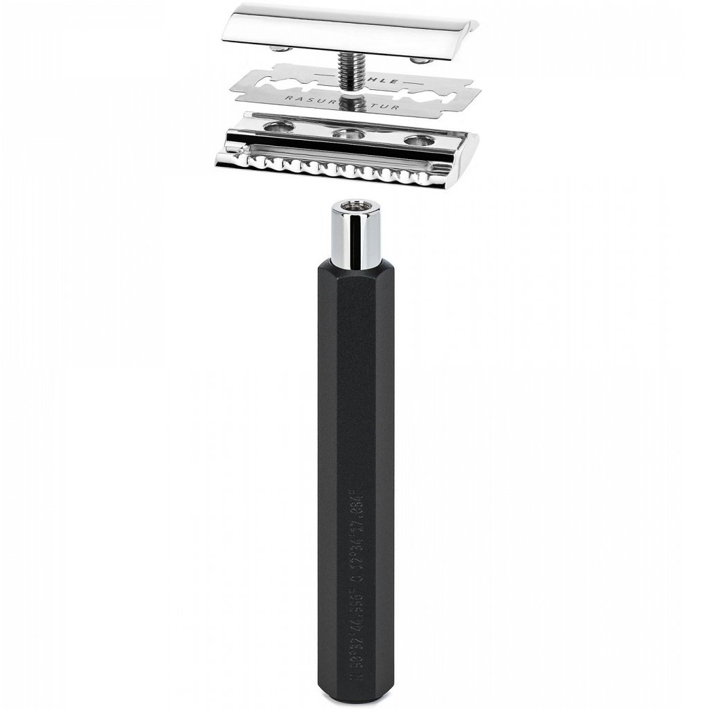 Muhle Double Edge Safety Razor Hexagon Graphite zorgt voor een luxe scheerbeurt met precisie en comfort. Het grafieten handvat zorgt voor een stevige grip en een moderne uitstraling, terwijl het ontwerp een perfecte balans biedt. De gesloten kam biedt extra veiligheid en controle voor een gladde, verzorgde huid. De combinatie van het aluminiumhandvat en de verchroomde metalen scheerkop maakt dit scheermes zowel stijlvol als duurzaam. Dit is de ideale keuze voor mannen die op zoek zijn naar een efficiënte, luxe scheerbeurt.