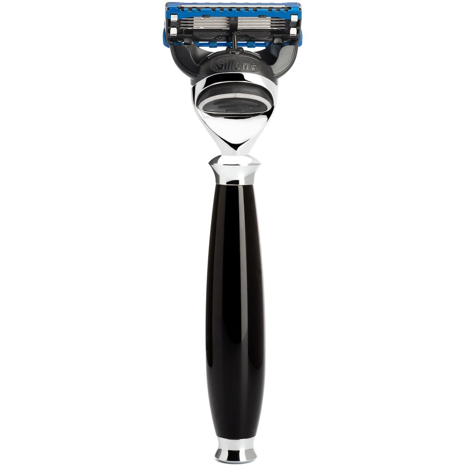 Muhle Fusion Scheermes Purist Zwart combineert modern design met uitzonderlijke prestaties voor een luxe scheerbeurt. Het handvat is gemaakt van hoogwaardig kunststof met een stijlvolle zwarte afwerking, wat niet alleen zorgt voor een elegante uitstraling, maar ook voor een stevige, comfortabele grip. De Fusion scheerkop, uitgerust met vijf mesjes, biedt een nauwkeurige en gladde scheerbeurt, waardoor irritatie wordt geminimaliseerd en je een perfect resultaat behaalt. Dit scheermes is ideaal voor zowel beginnende als ervaren scheerders die op zoek zijn naar een verfijnde, gebruiksvriendelijke scheerbeurt.