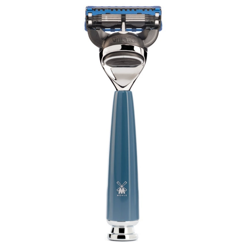 Muhle Fusion Scheermes Rytmo Petrol is een luxe scheermes van hoogwaardige kunststof hars en vijf precisiemesje met smeerstrips voor extra comfort. Het handvat van dit scheermes is gemaakt van hoogwaardig kunststof hars, waarvan het oppervlak individueel is bewerkt en verfijnd. Het materiaal is ideaal voor exclusieve accessoires en scheergerei, omdat het een breed spectrum van moderne en klassieke ontwerpen in vele aantrekkelijke kleuren mogelijk maakt. Dit scheermes bevat zachte, veilige en betrouwbare mesjes. De vijf boven elkaar geplaatste mesjes zorgen voor een zorgvuldige en grondige scheerbeurt die ook zacht is voor de huid. Het precisiemesje zorgt voor precieze contouren, terwijl comfortabele smeerstrips een nog gladder resultaat garanderen. Dankzij de eenvoudige en veilige bediening is dit systeem ideaal voor nieuwkomers.