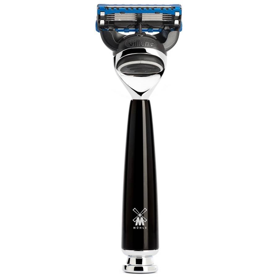Muhle Fusion Scheermes Rytmo Zwart biedt een stijlvolle en comfortabele scheerbeurt. Het handvat is gemaakt van hoogwaardig edelhars, wat zorgt voor een stevige grip en een luxe uitstraling. De verchroomde metalen details geven het scheermes een moderne afwerking en dragen bij aan de duurzaamheid. Dit scheermes is compatibel met de Gillette Fusion mesjes, die vijf mesjes bieden voor een nauwkeurige en comfortabele scheerbeurt. Het Muhle Fusion Scheermes Rytmo Zwart is een perfecte keuze voor wie op zoek is naar een scheermes dat zowel praktisch als aantrekkelijk is, met een lange levensduur en uitstekende prestaties.