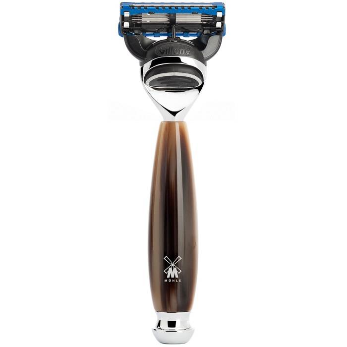 Muhle Fusion Scheermes Vivo Hoorn is een stijlvol en functioneel scheermes met een handvat van kunststof in hoornlook en verchroomde metalen accenten. Het mes is ontworpen voor gebruik met Gillette Fusion mesjes en biedt een gladde, comfortabele scheerbeurt dankzij de vijf mesjes en ergonomische grip. De combinatie van klassiek design en moderne techniek maakt dit scheermes geschikt voor iedereen die waarde hecht aan kwaliteit en comfort tijdens het scheren.